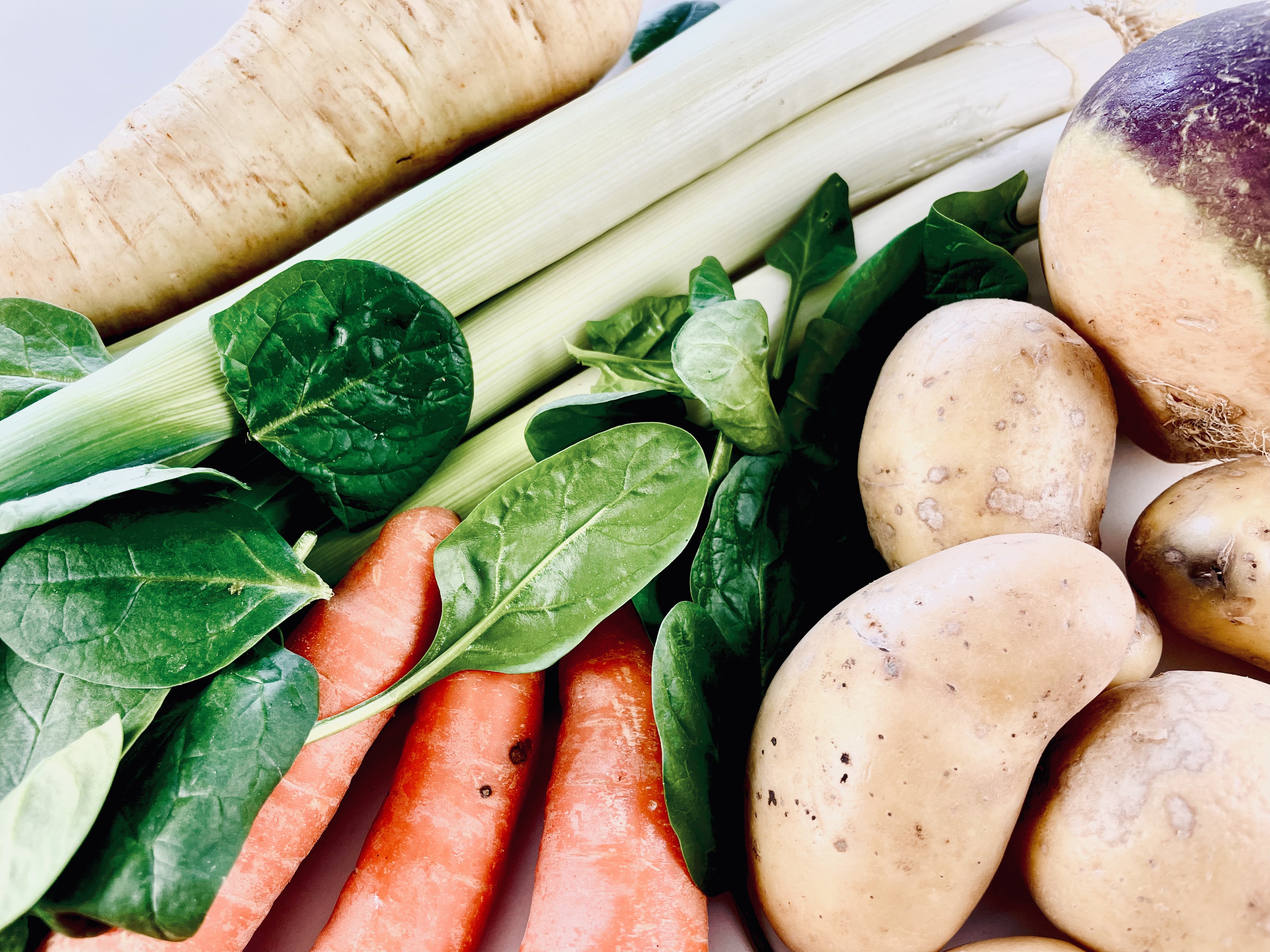 - Légumes locaux de saison : chou (rouge, blanc, frisé, kale), brocoli, poireau, carotte, navet, cresson, betterave, panais, épinard, topinambour, salsifis…